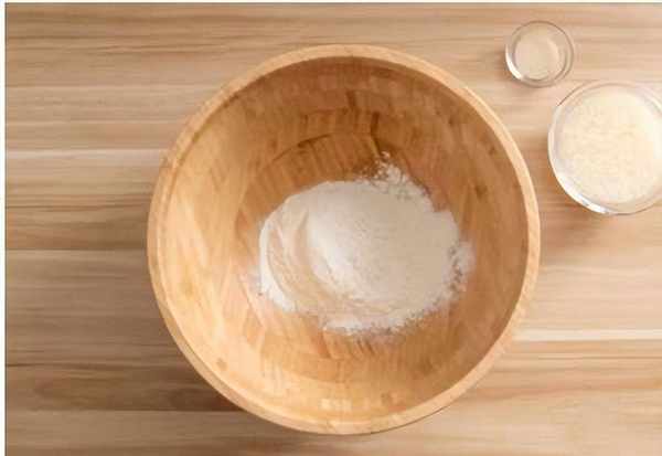 1.酵母用温水(与手温差不多即可)化开,倒入中筋面粉、白糖,揉制成「三光状态」的面团。