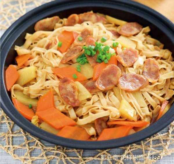 手擀面 100 克|土豆 1 个|胡萝卜 1 根|香肠 2 根|娃娃菜 1 棵