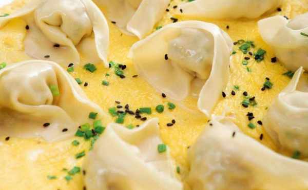 6.水干后,将蛋液均匀地铺满馄饨空隙处,凝固后撒葱花、熟黑芝麻,关火,盖上锅盖闷 3 分钟左右即可盛出。
