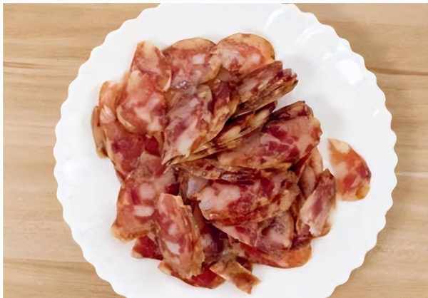 1.鸡蛋划散成蛋液;香肠洗净切薄片;青菜洗净。