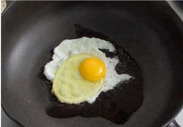 2.锅中倒入食用油烧热,打入鸡蛋,煎成荷包蛋备用。