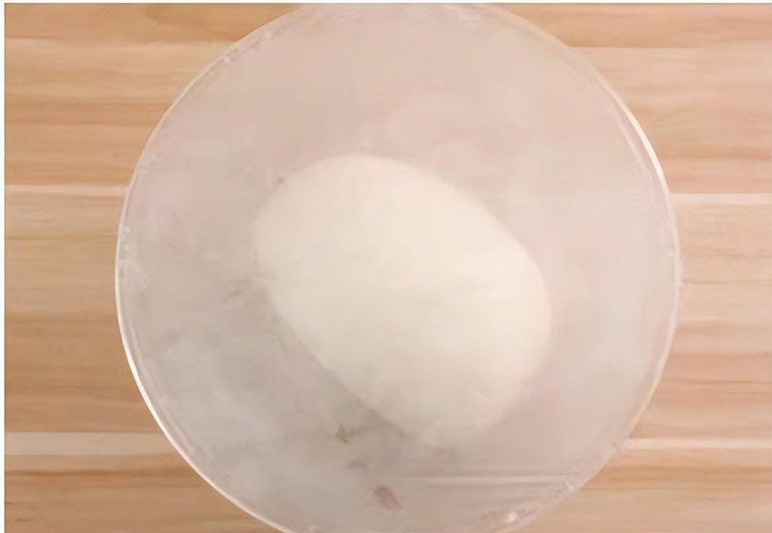 3.盖上保鲜膜,室温发酵 2~3 个小时。将面团发酵到 2 倍大后取出面团,排气后再整形。