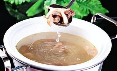 2.锅中加入清水,放入羊蹄。大火煮开后,去除浮沫,移至小火煨至羊蹄皮酥肉烂,加盐,捞起。原汤保留。