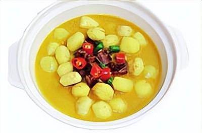 一、原料:去皮小土豆 500 克 腊排骨 300 克 青椒、红椒各 5 克