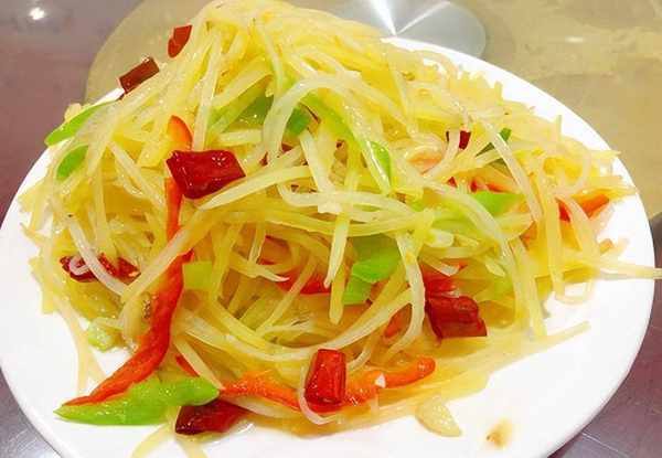 说到土豆丝的话,其实,很多朋友们自己在家里边儿也都会做这道菜,但是,有的朋友们做出来的土豆丝,它的滋味,就非常的奇特,口感不是那么的爽脆可口,要么就是炒糊不掉,要么就是会呈现粘锅的情况,所以,我们是可以直接去饭店里面点这道菜的,这道菜,非常的低价,在市面上,差不多十块钱左右就能够买到一大盘儿,重量非常的充足,价钱也比较适合,而且口感也非常的不错,可以说是餐馆里面比较干净的一道菜,由于做这道菜的时分,商家必需将土豆丝清洗的非常干净,之后,再放在锅中开端炒,所以,它是一道非常简单又干净的菜。