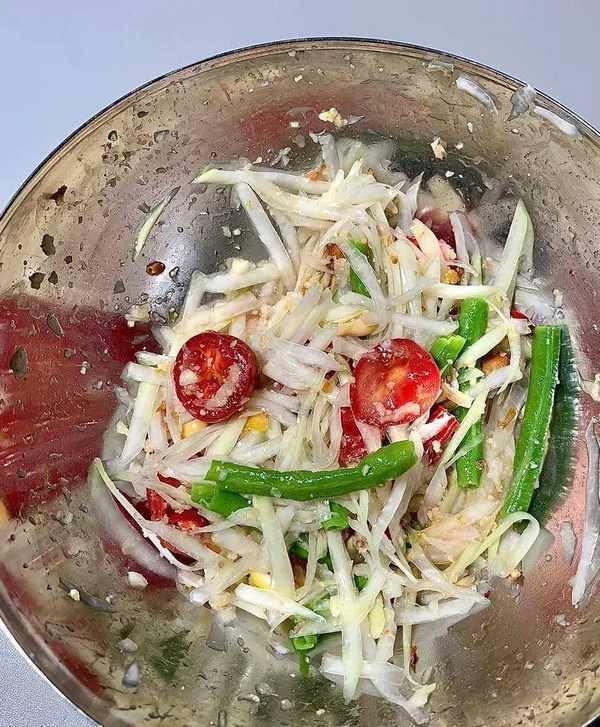 在这个做法中,番茄和豇豆可以让整道菜肴更加丰富多彩,而青木瓜的特殊口感则能够为这道菜肴增加新的体验感。此外,青木瓜还富含维生素C,而且其含量竟然是苹果的48倍,这一点也是非常值得一提的。