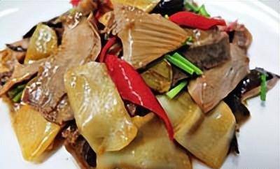 一、原料:猪肚 400 克 红椒 25 克 净冬笋(或净春笋或玉兰片)100 克 水发香菇 50 克(或水发云耳 50 克)