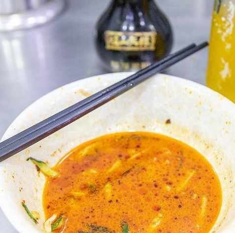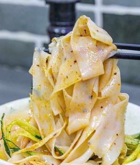 雪白的面皮搭配紅湯可以說是相得益彰。而且會吃的人會在最後把面皮撈完之後把碗裏的紅湯喝掉。不要覺得這碗紅湯是一堆調料調製的而不敢下嘴,這樣你會損失最精彩的部分。