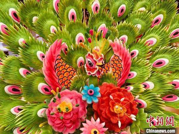 非遗花馍“孔雀开屏”。 任丽娜 摄