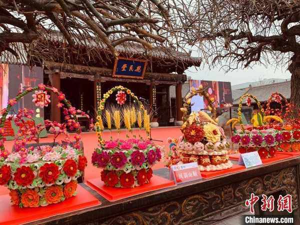 中新网临汾3月16日电 (任丽娜)16日,“霍州杯”黄河流域九省(区)非遗花馍展演在山西省霍州市开幕。来自山西、青海、四川、甘肃、宁夏、内蒙古、陕西、河南、山东等九个省(自治区)的150余件代表性特色花馍作品参加了展演活动。