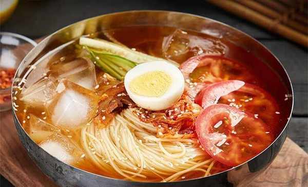 说到冷面,东北冷面不得不提,而在东北冷面中,延吉冷面又被公认为榜首。延吉冷面是我国朝鲜族的传统美食,原料是用荞麦粉、小麦面粉与淀粉制成的。做延吉冷面,要先炖一锅牛肉清汤,汤底不见油星却无比醇厚。荞麦面稍微煮几分钟,要用凉水过凉后冷藏。再用白糖、米醋等调出美味料汁。在冷面上要放牛肉片、半切鸡蛋、黄瓜丝、泡菜、辣酱和点睛之笔的水果片,让酸甜咸辣四种滋味在碗中碰撞。带着冰碴子的冷面,要先喝一口汤,烦恼瞬间就褪去了一半。