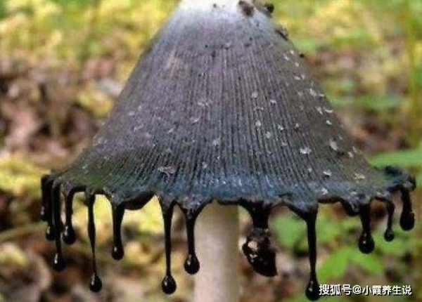 这种蘑菇比较特别,顶部是白色的,但底部逐渐变黑,所以又被称为鬼屋、鬼伞等。这种蘑菇不宜与酒同食。