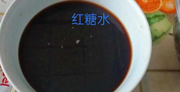 1:先将100克红糖放入盆中,用350克开水搅拌至融化,放一旁放凉备用。