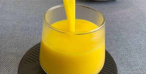 2、打好后的玉米汁金黄油亮,细腻脆滑,入口香浓清甜,一点渣都没有,来上一杯真是太香甜了,常喝有润肠通便、健脾祛湿等功效。