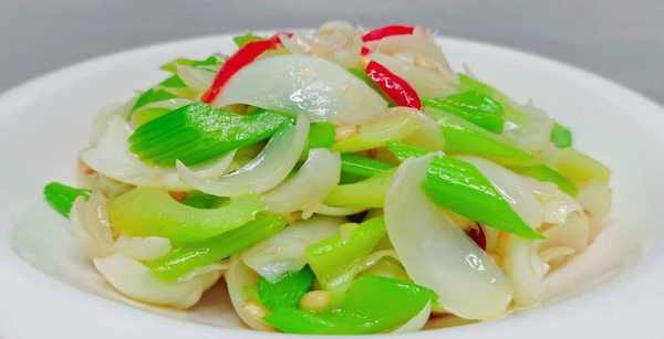 1、鲜百合打散后放在清水中浸泡十分钟,浸泡过的百合味道更加甘甜。西芹斜刀切成片。红椒切成片。