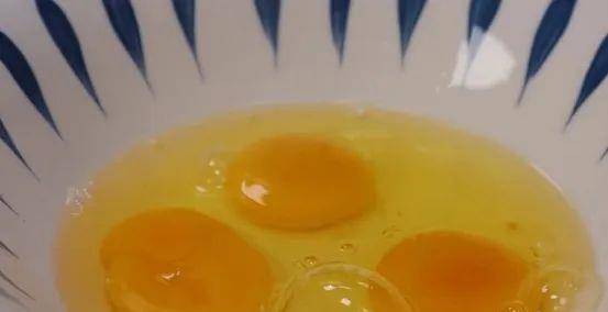 2. 在碗中打入3个新鲜鸡蛋,滴上白醋去鸡蛋腥味,用筷子搅散鸡蛋液,放置备用。