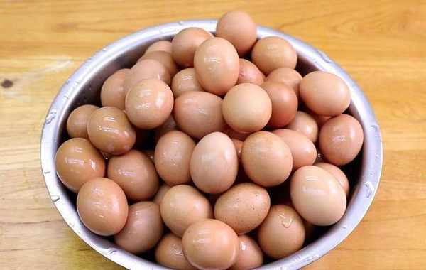 7.这是腌了十天的效果,现在取出来几个冲洗干净,凉水下锅煮一下,烧开以后转小火煮8分钟就可以了,一般情况下鸡蛋飘起来就熟了,美味即成。