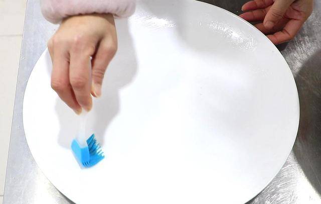 3.2个小时以后,取出面团看一下,用手扒开看一下面团的里面,有很多蜂窝眼说明面团已经发酵好了,取一个盘子,用小刷子均匀地刷上薄薄的一层植物油,避免窝头粘住盘子。