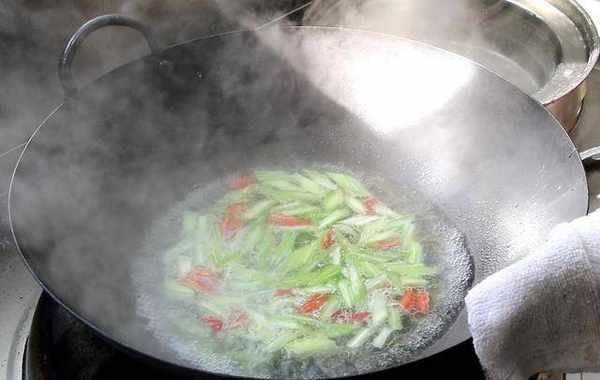 2.锅内加入适量清水,加入少许食盐和植物油,水烧开后倒入切好的芹菜和红椒,焯水分钟左右,芹菜断生后捞出,用清水冲洗冷却备用,清水冲洗能使芹菜口感更脆。