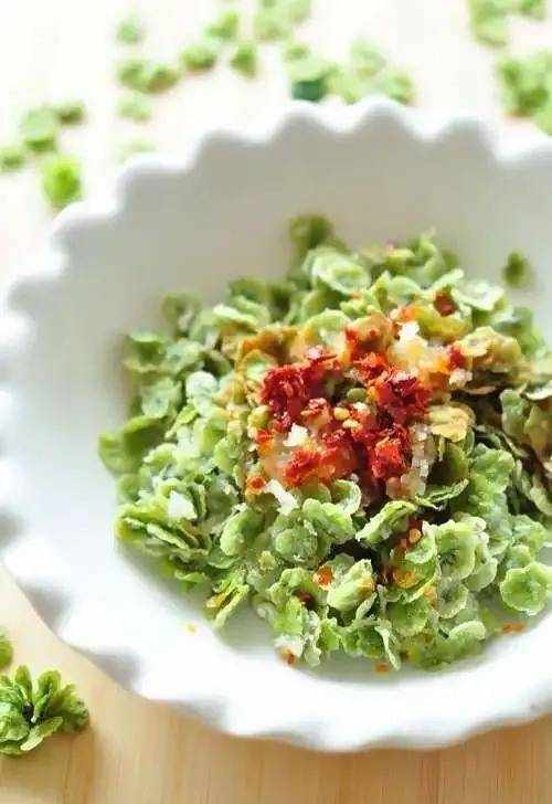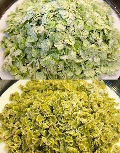 说到榆钱,因色泽翠绿,形如铜钱。故而得名。吃榆钱,有“余钱”,口感脆甜,图个彩头。