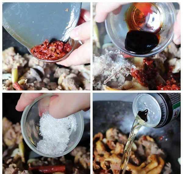 加好之后把啤酒打开倒进去,倒入的量没过肉就可以;