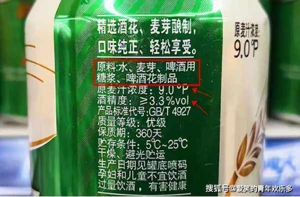 而啤酒的酒精度数,是要通过背后的标签才能看出来的。