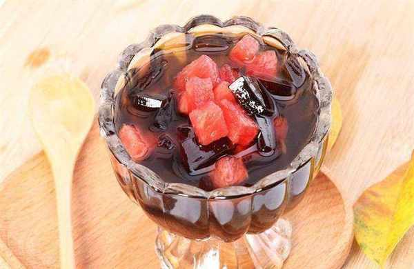 加入白糖搅拌均匀,放凉冷藏至凝固,芋头洗净去皮切小块,放入锅中,加少许水,大火烧开,小火慢炖半小时,煮熟待芋头软烂即可,取出晾凉,红豆、薏米、绿豆蒸50分钟,至软烂。西瓜洗净切小块,葡萄洗净去皮,火龙果去皮切小块,随便放什么水果,石膏膏取出切丝,盛入碗中,加入红豆、绿豆、薏米、蜜芋头,再加入西瓜、葡萄、火龙果,加一勺蜂蜜,再倒入冰水,即可食用。