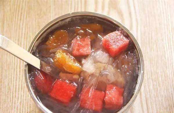 有的四锅汤店用的是普丁和馅料,所以味道就不一样了。这些食材的味道都比较甜,在炎热的夏天吃起来很清爽!四果汤盛在碗里。看起来很简单,其实也有一系列的制作工艺。首先,它需要搭配的食材种类繁多,需要提前准备好,并进行一定程度的加工。