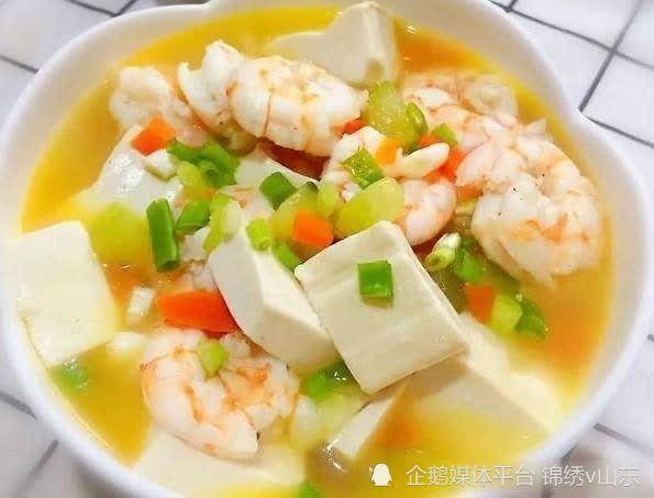 ④等再次煮开后淋入蛋液,做出蛋花,再倒入少许香油,放入葱花或者香菜,山药虾仁豆腐汤就做好了,营养丰富,钙质含量高,让孩子多吃可促进快速长个儿。