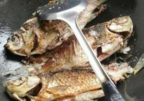 第四步:在平底锅中加热油。油烧开后,将小龙虾煎至鲤鱼两面焦黄。
