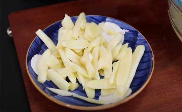 2.先把生姜削皮再切成片,切好的姜片放在清水里多清洗几遍,这样辛辣味就不会那么重了。
