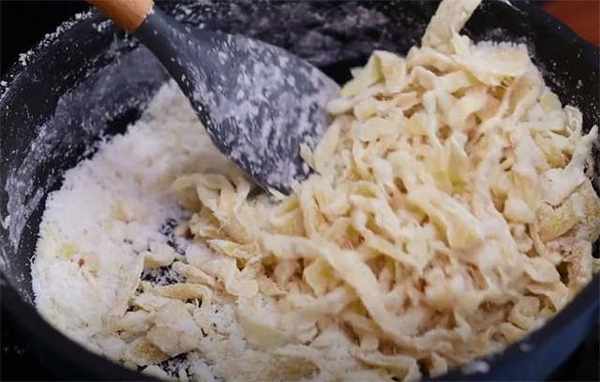 5.然后关火不停的翻拌,使每一片姜片都裹上糖霜。