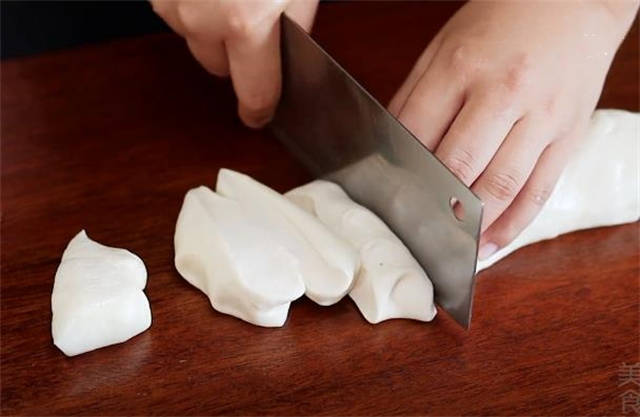 3.面团饧好之后这个延展性变得特别好,直接搓成长条,再切成小面剂。