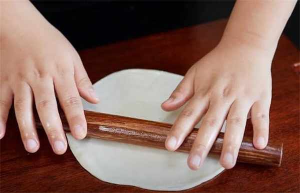 4.处理小面剂的时候,直接用双手把它搓圆了,然后按扁,擀成饼皮。