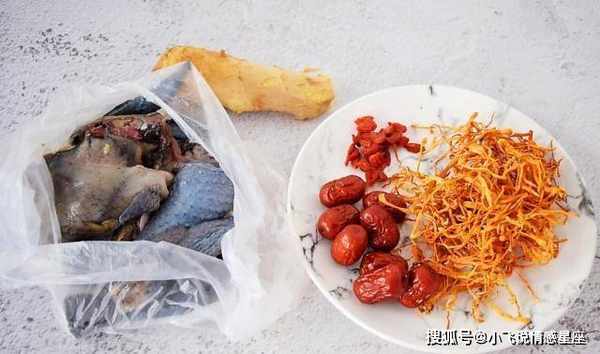 原料:乌骨鸡、虫草花、红枣、枸杞、姜、盐、水。练习步骤: