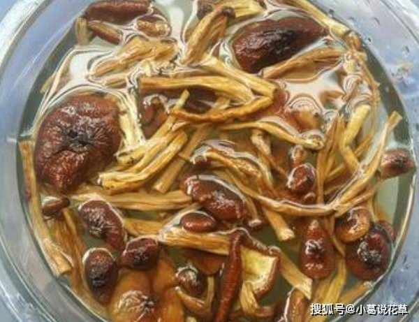第三步:将茶菇用清水浸泡至浸透,去根及杂质,洗净备用。