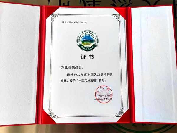 云上恩施报道(鹤峰通联记者 向申荣 通讯员 王永旭)3月16日,中国气象服务协会在浙江省松阳县召开第四届氧吧产业发展大会暨2022年“中国天然氧吧”媒体推介会,为2022年度"中国天然氧吧"创建地区授牌。湖北省鹤峰县被授予“清爽怡人-富养之地”“中国天然氧吧”称号。