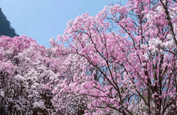 每年的3月下旬到4月上旬,就是辛夷花盛开的日子,迎风飘扬的辛夷花漫山遍野地开放,放眼望去好像就是粉红色的花海,所以来这里游玩一定要穿上显眼的衣服,才能在这一片花海中拍出美美的照片。