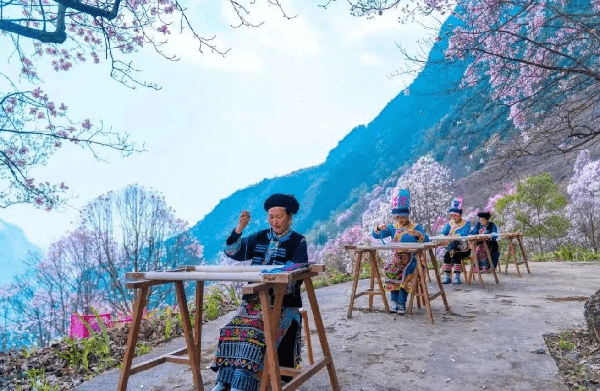 这里的村民也是心灵手巧的,大家都知道少数民族属于能争善战,心灵手巧,而羌族的女孩属于尤为心灵手巧中的一类。在辛夷花下女孩们,大妈们,一帧一帧的将春日绣在画布当中,显得既美好又充满乐趣,当地也提供DIY绣花活动,想要感受不同刺绣文化的姑娘们,也可以来这里体验。