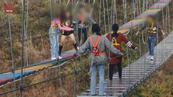 据了解,发生事故的“步步惊心”游乐项目,是近年来新兴的一种高空挑战玩法,大多建设在峡谷、河流上方,桥面由一块块隔板组成,游客穿戴安全带,迈步通过。