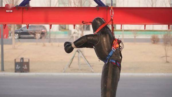 3·15晚会联合国家消防救援局,进行了安全测试。在离地7米高的实验台,模拟高空游乐项目,消防员为身高1.7米,重量60公斤的道具假人穿戴好三点式安全带。