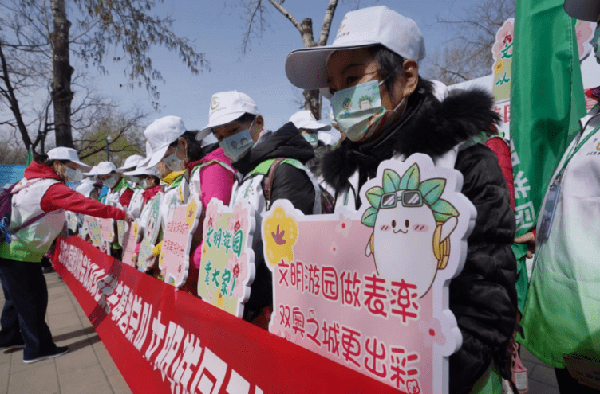 市园林绿化局公园管理处处长彭强介绍,今年,全市文明游园引导工作将持续推进。按照“市—区—园”三级联动以及“公园+社区+志愿+执法”四方共管共治的思路,将在春季和秋季的每个周末,开展“文小明、游小园带您文明游园”巡游宣传,引导社会各界关注和参与北京公园管理服务,推动城市共建共管、共治共享,持续提升市民游园体验。