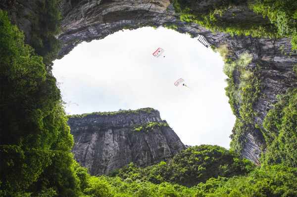 两位达人首先来到了天生三桥景区,大自然造就的三座天生石桥,用雄、奇、险、秀、幽这五个字来形容绝不夸张,在上千万年的风风雨雨之后,风采依旧。James和Hussain 一路走走停停,遇见古朴的官驿,在青山绿水之间显得幽静雅致;遇见鬼斧神工的神鹰天坑,在蓝天白云之下多了一丝神秘……