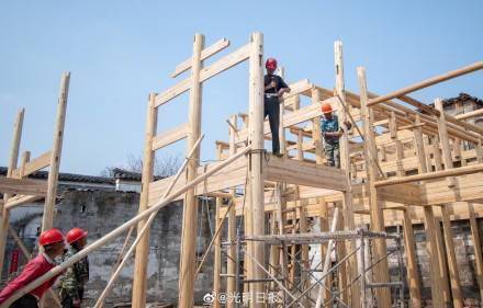 3月15日,江西省抚州市金溪县浒湾镇古街区,当地工匠正在加紧修缮老屋。金溪县被誉为“一座没有围墙的古村落博物馆”,有128个完好保存的古村落、11633栋明清古建筑,其中7个中国历史文化名镇(名村)、57个中国传统村落。近年来,金溪县持续推进古镇古村保护与开发,探索古镇古村活化利用之路。(光明日报全媒体记者胡晓军李玉兰 王洋 通讯员邓兴东)