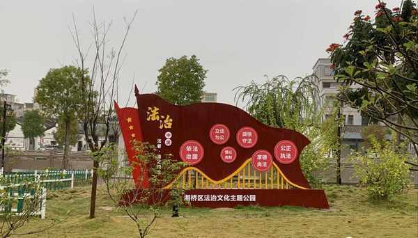 湘桥区法治文化主题公园由湘桥区委政法委、湘桥区法院、湘桥区税务局和湘桥区司法局联合打造,法治文化公园内设置有石碑、法治文化长廊、宣传栏、石椅等,将法治元素添加进群众的休闲生活中,让广大群众感受浓厚的法治氛围。