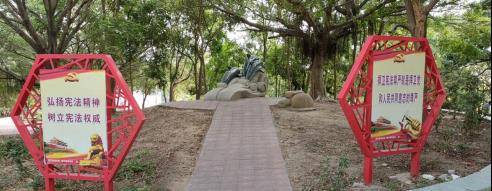 詹厝村党建法治公园环境优美、主题性强,公园分成党建、法治、社会主义核心价值观等综合板块,让人民群众在散步、观景、赏花时近距离领略法治文化、感受法治精神,自觉形成尊法、学法、守法、用法良好社会氛围。