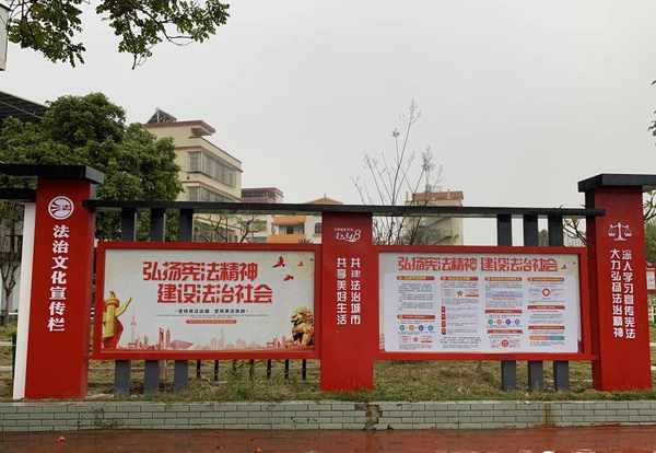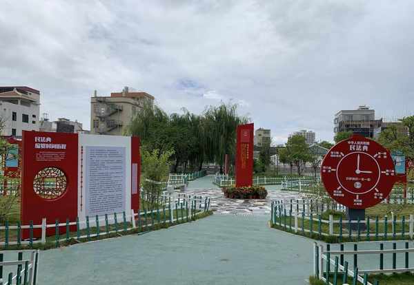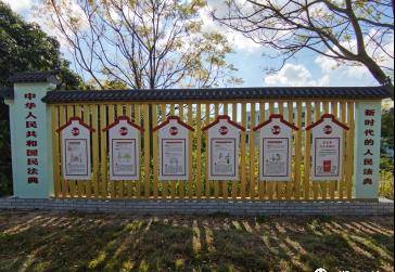 樟溪镇新民村依托原有的村文化中心小公园,建造了面积约5亩的法治公园,民法典宣传栏、法治互动游戏等“法治”元素的景观设施,形成了靓丽的法治风景线,吸引人民群众驻足观赏。