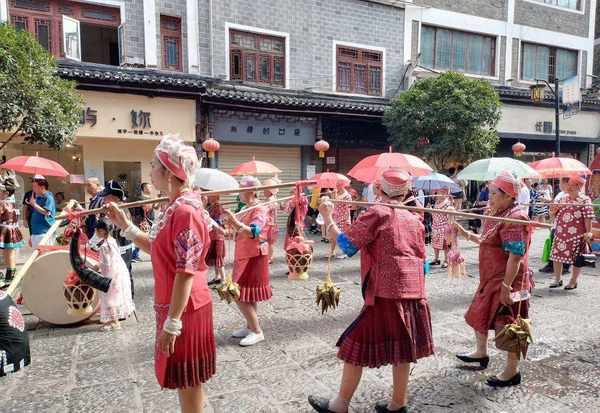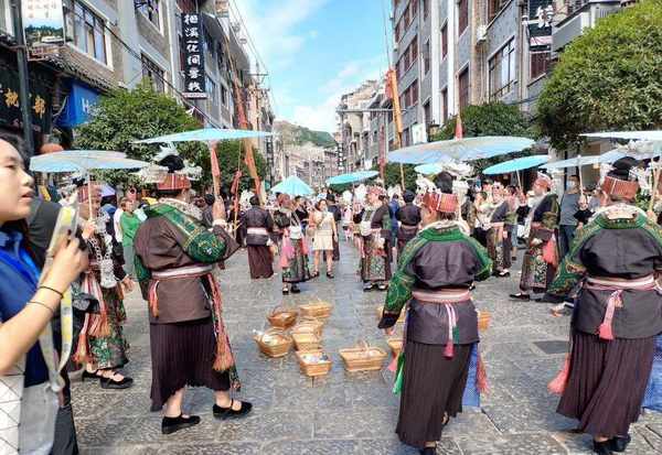 巡游队伍还在继续前进,此时真是万人空巷,整个古城就是一个欢乐的海洋!巡游过后才是龙舟比赛,不知要等到什么时候才会开始?有幸见到了盛大的巡游活动,却老是等不来划龙舟比赛,我们只能恋恋不舍地启程奔赴下一站:梵净山。