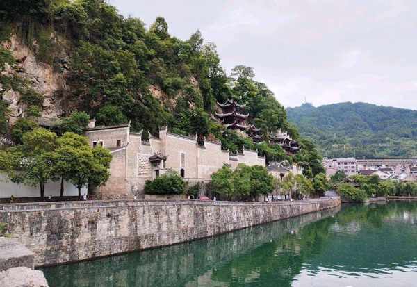 青龙洞背山面水,贴壁临空而建,五步一楼,十步一阁,全部依山因地,与悬崖、古木、藤萝、岩畔、溶洞融为一体,巧夺天工。有吊脚楼,寺院禅台,有学子院,更有戏台,集天下山水楼阁荟萃于一处,不来这里看看,真不算来过镇远。