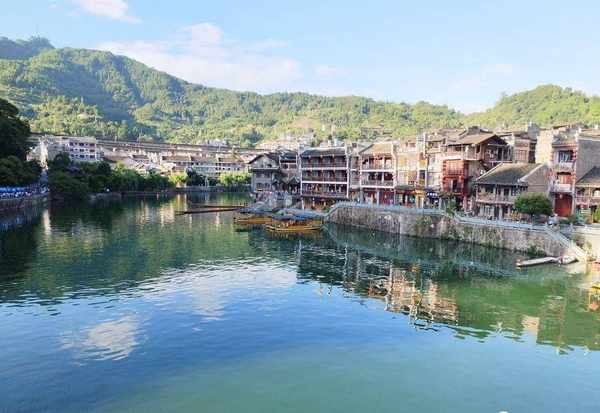 如果你一直只沿舞阳河两岸的游道前行,就只能欣赏到非常有限的古城景观,于是我们走上街道去感受古城风貌。古城民居的建筑风格为青砖黛瓦、高封火墙、飞檐翘角、雕梁画栋,与土家族、苗族等少数民族的木质建筑有非常大的区别。
